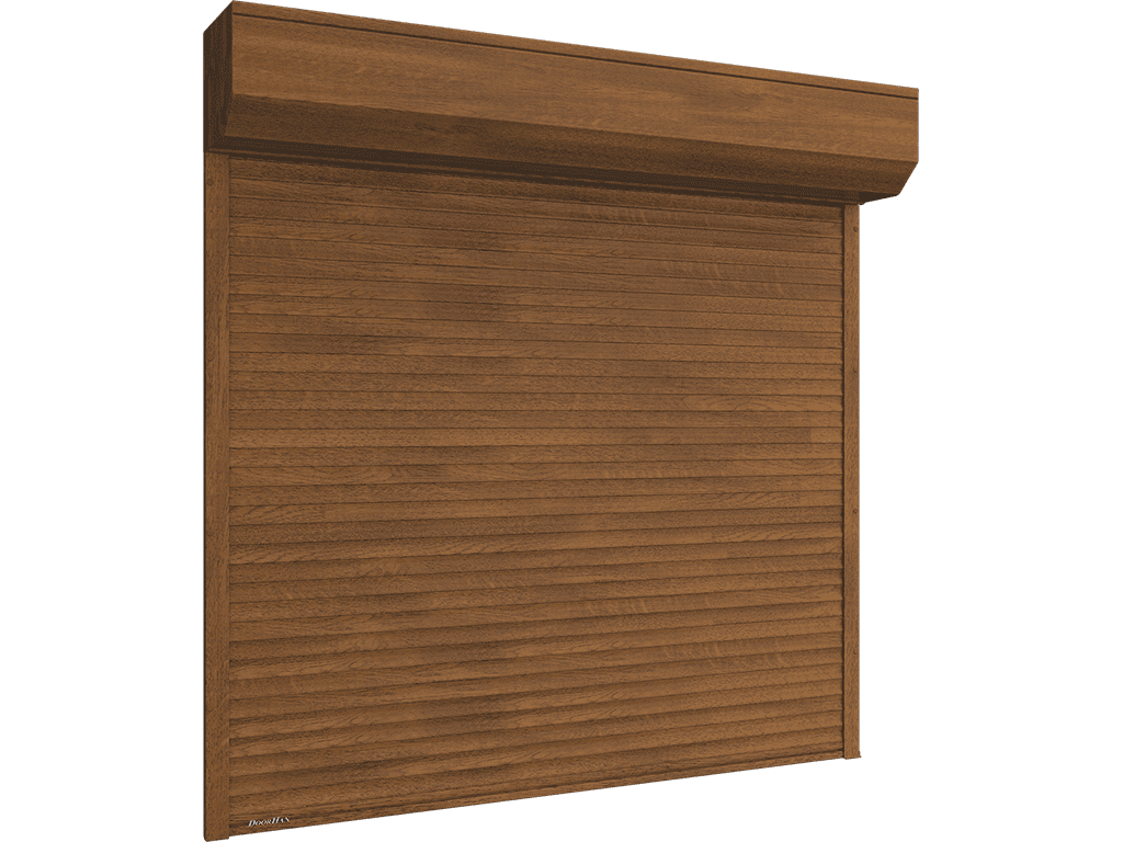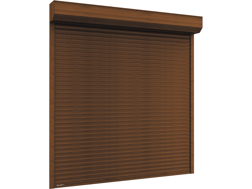 Используются не только для надежной защиты оконных проемов от взлома, но и в качестве оригинального украшения зданий, благодаря уникальному дизайнерскому решению от концерна DoorHan — окраске полотна и комплектующих в цвета «под дерево»: «золотой дуб» и «темный дуб».
